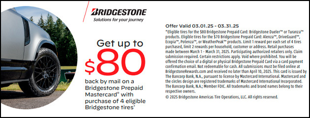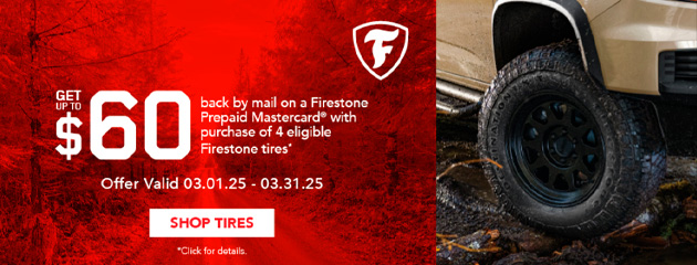 *Cannot be combined with any other offer. Valid with the purchase of tires. See store for details.